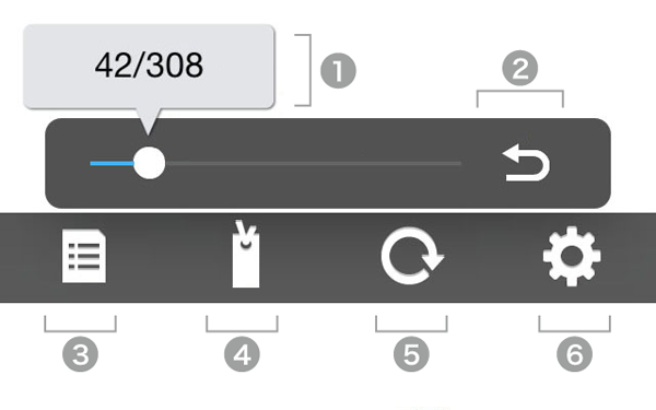 3. ビューワ設定:「明るさ調整」や音声再生パネルの「早戻し」「早送り」の秒数設定などができる画面が開きます。
