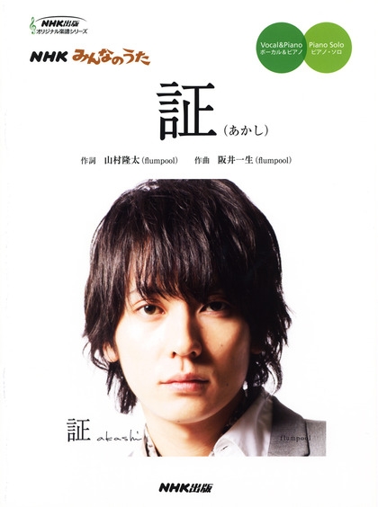 flumpoolがうたう「証」のピアノ楽譜ピースNコン2011とNHKみんなのうたの共同企画曲であるflumpool「証」、待望のピアノ楽譜ピース。ボーカル&ピアノ譜+ピアノソロ譜(コード付)。山村隆太 作詞(flumpool)阪井一生 作曲(flumpool)