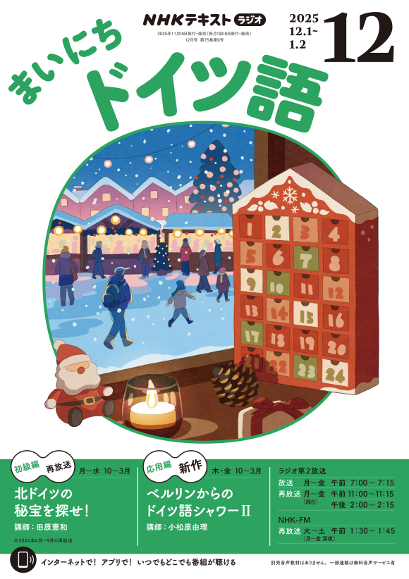 ハンブルクから北ドイツを旅する物語を楽しみながら、会話で役立つ表現を中心にドイツ語の基礎を学びます。