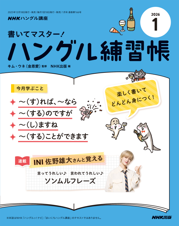 文字の基礎から基本文法まで、初学者でもすぐに使えるワークブック監修:キム・ウネ〔金恩愛〕■月刊18日発売■電子版なし※放送テキストではありません。