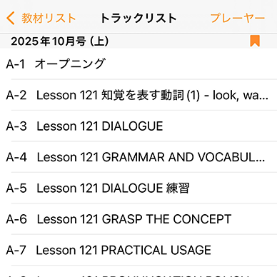「テキスト音声」はNHK英語講座の各コーナーをトラック分けしているので、聞きたい箇所を選んですぐに聞くことができます。