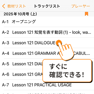 番組で聞き取れなかったスキットも、トラックを選んですぐに確認できるので、聞き取りにも発音練習にも便利です。(Iさん)