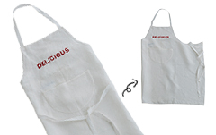 「きょうの料理」に出演して今年で10年。師匠から「失敗してもOK。とにかく笑顔で」と背中を押されたその言葉は、今も本番前に思い出しています。料理も同じで、失敗を恐れず、笑顔で楽しくキッチンに立つことがとても大切。私は麻のエプロンが大好きですが、なかでもこの「DELICIOUS」(おいしい)の刺しゅうは気分が上がって、楽しい気持ちになるんですよ。
