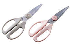 私が9歳のときに始まった「きょうの料理」。台所に立つ母と私、幼い日の思い出と60年の歩みが重なり、しみじみとした気持ちになります。そんな私がおすすめするのはキッチンばさみ。小~中サイズの魚をさばくときに大活躍しますが、フワフワのパンやサクサクの豚カツなどもきれいに切り分けられます。持ち手がソフトなので手も痛くなりませんよ。グレーとピンクの2つのカラーです。