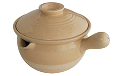 幼いころから大好きだった「きょうの料理」。いつまでも変わらず、愛される番組としてずっと続いてほしいです。そんな私と同じ思いの皆様におすすめしたいのが、使い勝手のよい小さな土鍋。全面に釉薬がかかっているのでひび割れの心配が少なく、その小粋なデザインはお鉢がわりに使っても素敵ですよ。織部の色み、信楽焼の風合いが気に入っています。