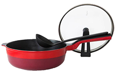 手づくりの家庭料理は愛がいっぱい。「心」というスパイスが入っているからおいしくなるの。がんばってつくりましょうね。たとえお料理が苦手でも一台で煮る、焼く、炒める、揚げるなど何役もこなすフライパンがあれば安心。おたまはマグネット内蔵のハンドルにピタッとくっつき、ふたの取っ手にもさし込めるので、調理中の置き場所に困らず、キッチン回りもスッキリ。楽しく調理ができますよ。