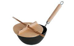 〈直径23㎝×深さ9㎝〈柄約20㎝〉、木ぶた、菜箸〉