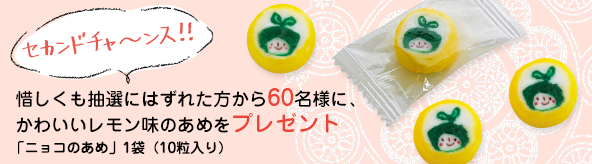 商品の発送をもって発表にかえさせていただきます。ご当選者のご都合で、当選商品がお届けできない場合は繰り上げ当選をさせていただく場合があります。
